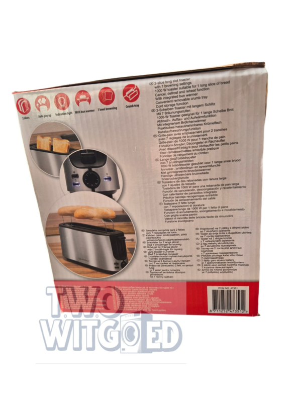 Lange gleuf broodrooster voor 2 sneeën brood met steun voor broodje